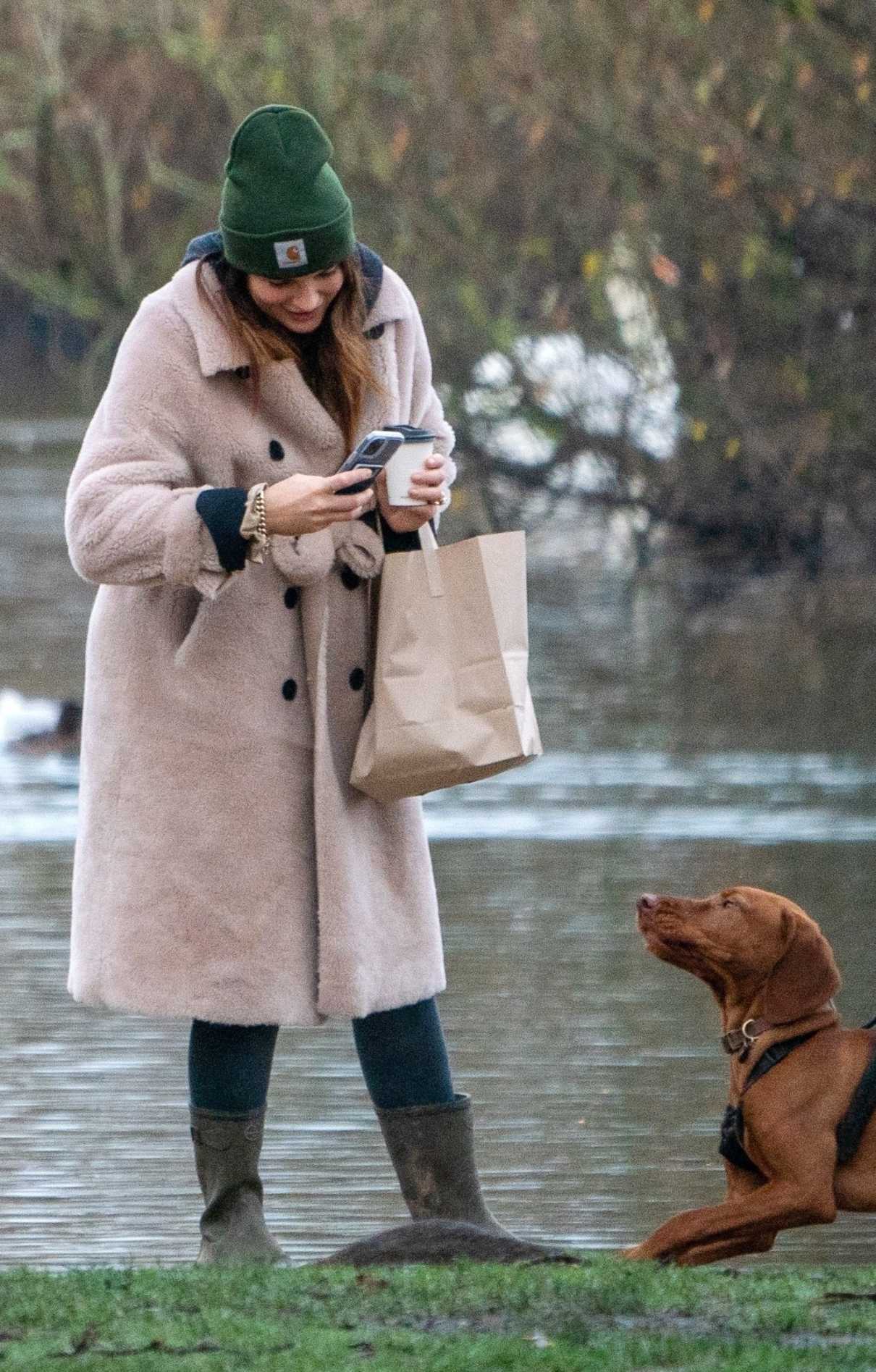 Alexandra Felstead in a Beige Fur Coat Was Seen Out in London 12/28/2020