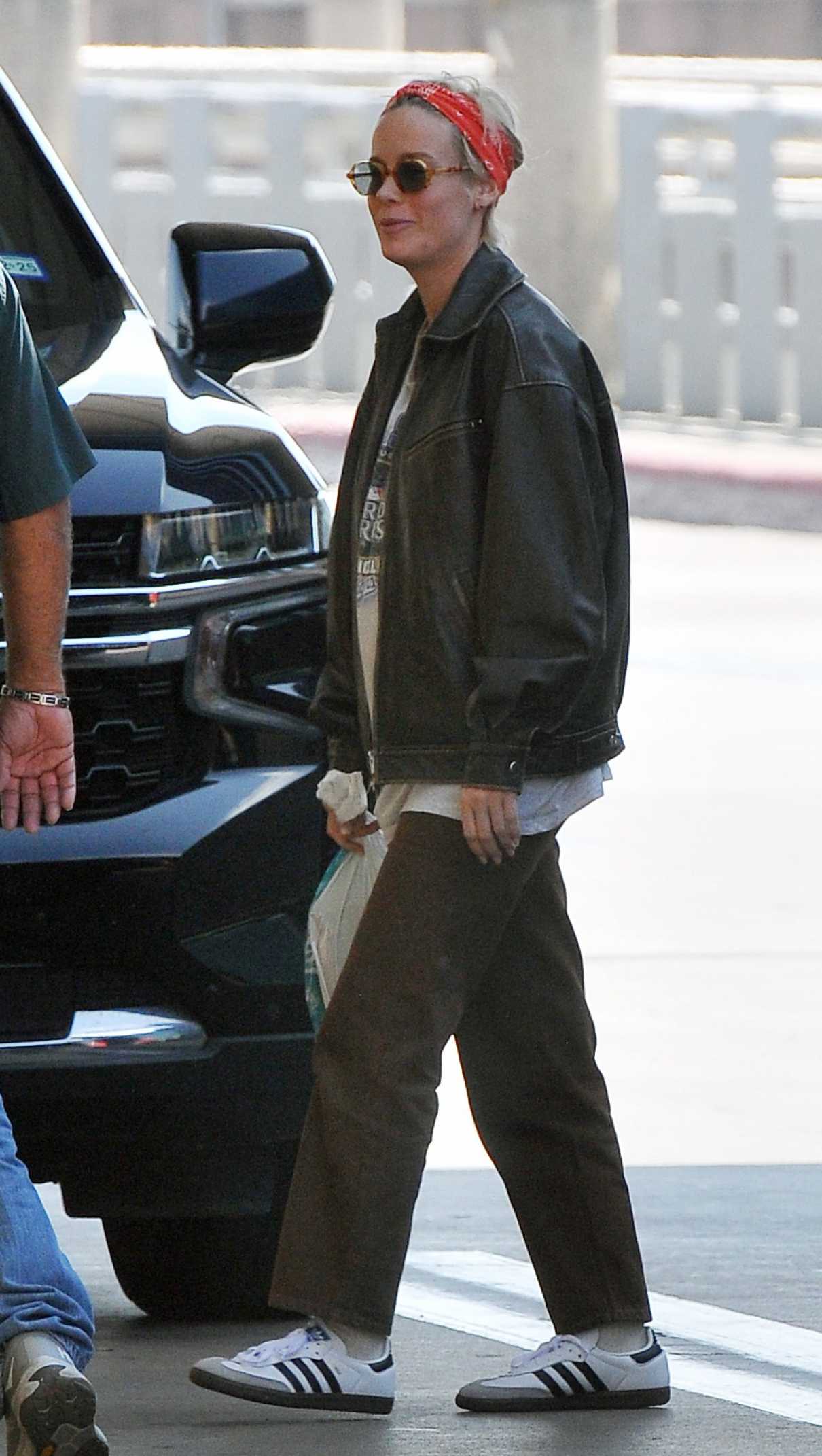 Brie Larson in a Black Leather Jacket Was Seen on Her Way to the Airport in San Antonio 10/27/2025-4 Previous image Next image