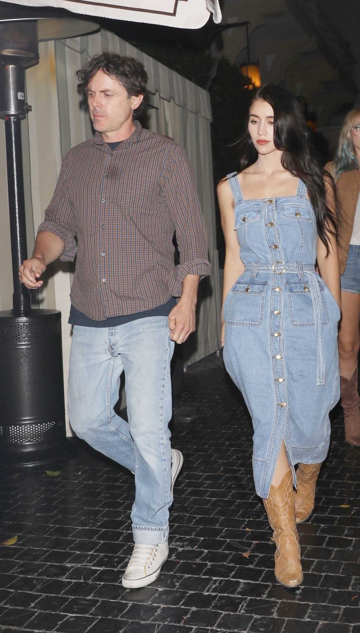 Caylee Cowan in a Blue Denim Dress Enjoys a Night Out with Casey Affleck and Friends at the Chateau Marmont in West Hollywood 09/27/2025-3 Previous image Next image