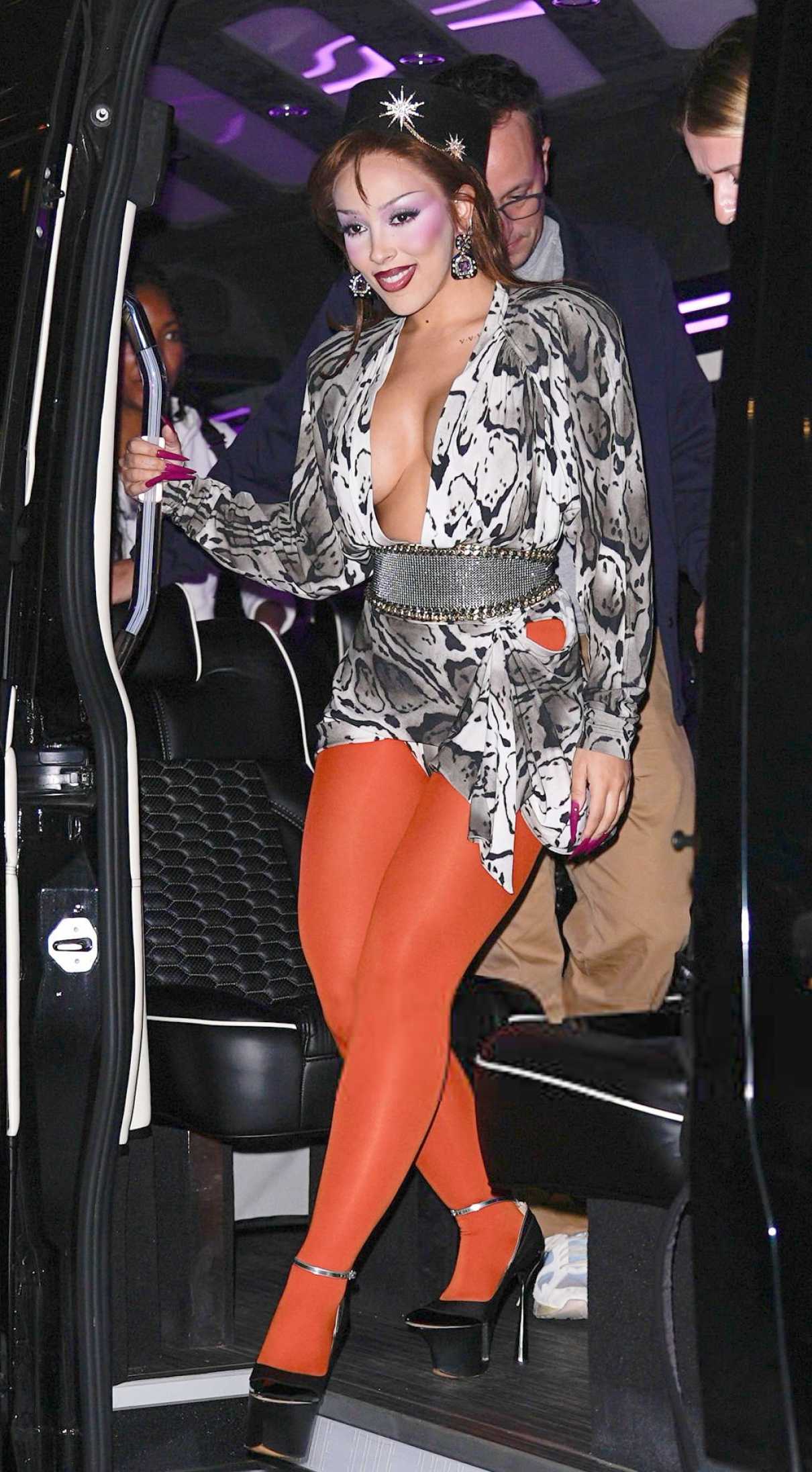 Doja Cat in an Orange Leggings Was Seen Out in New York City 10/01/2025