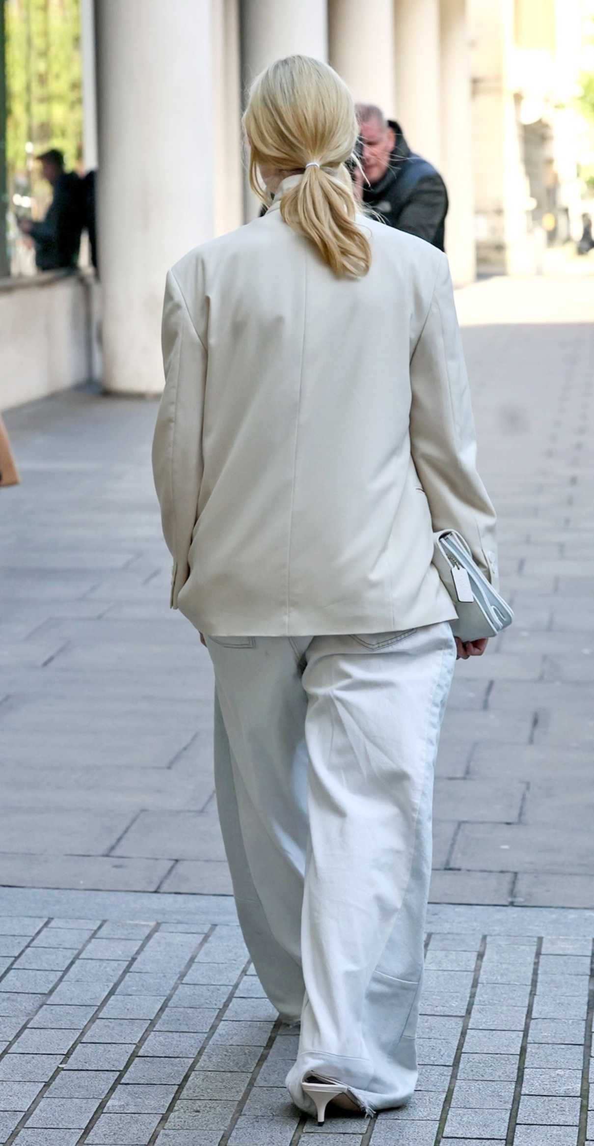 Elle Fanning in a White Ensemble Makes an Appearance at BBC Broadcasting House in London 10/28/2025-5 Previous image