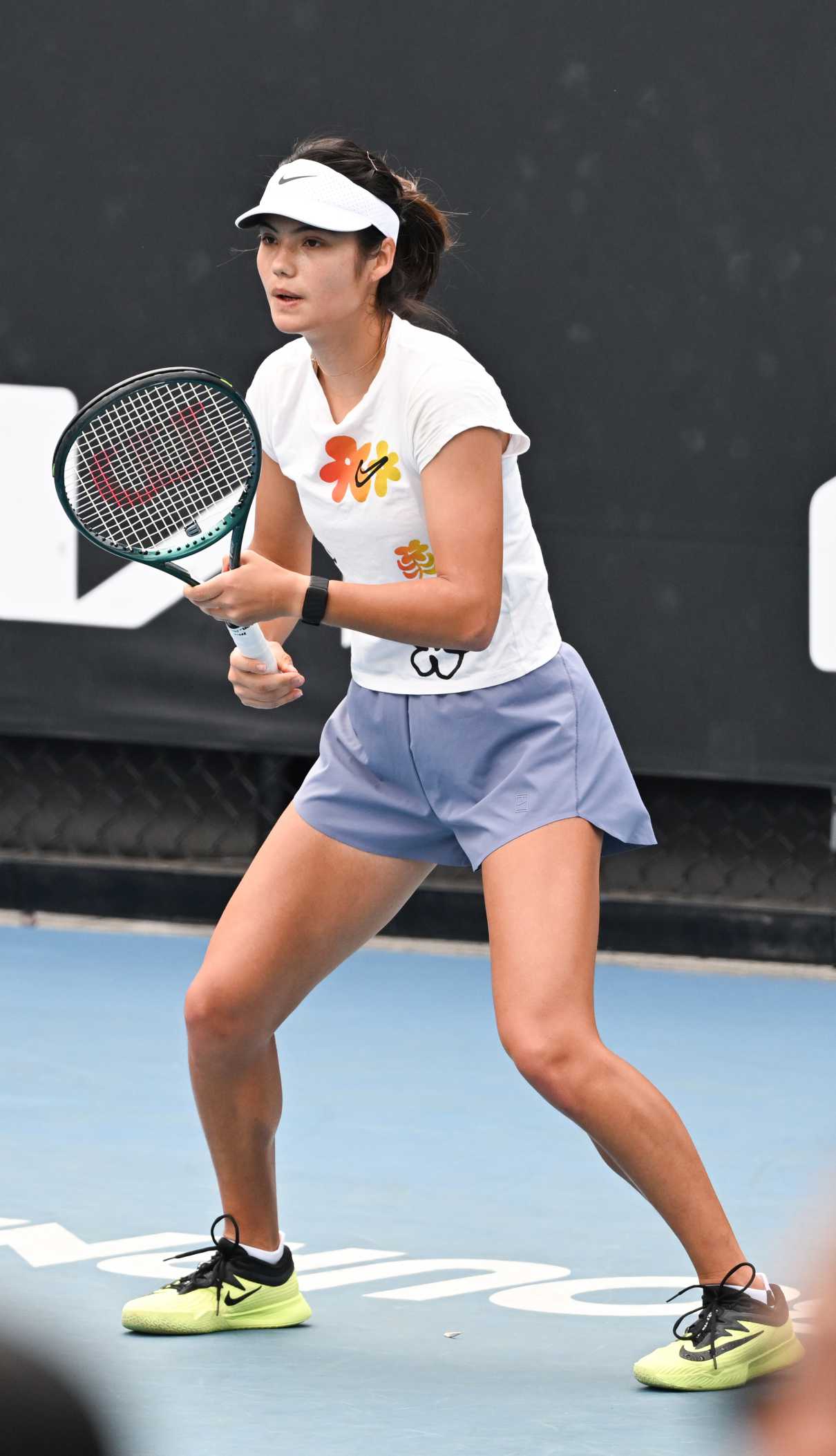 The 23-year-old British tennis player Emma Raducanu at a practice session during 2026 Australian Open in Melbourne.