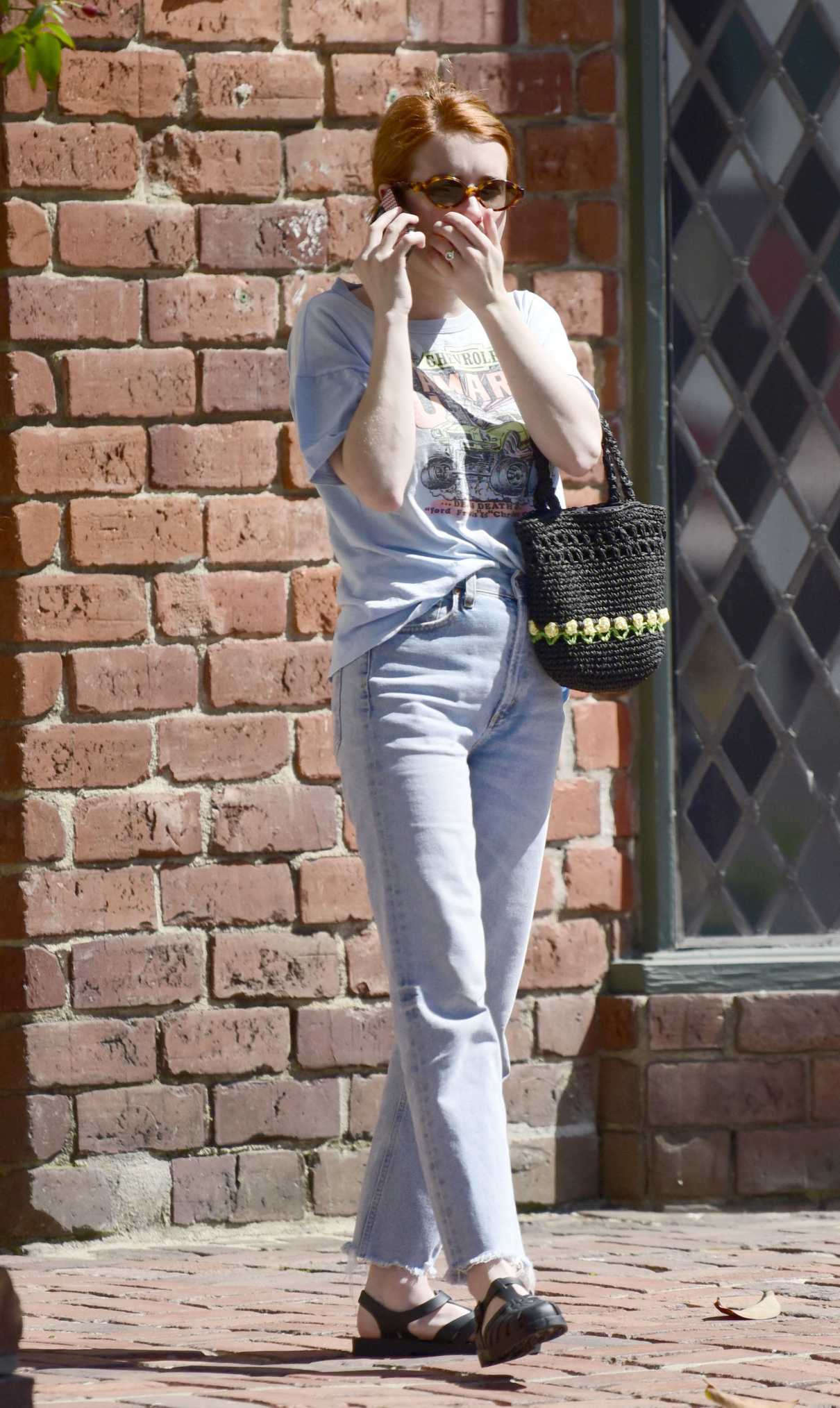 Emma Roberts in a Blue Jeans Was Seen Out in Los Angeles 04/16/2025