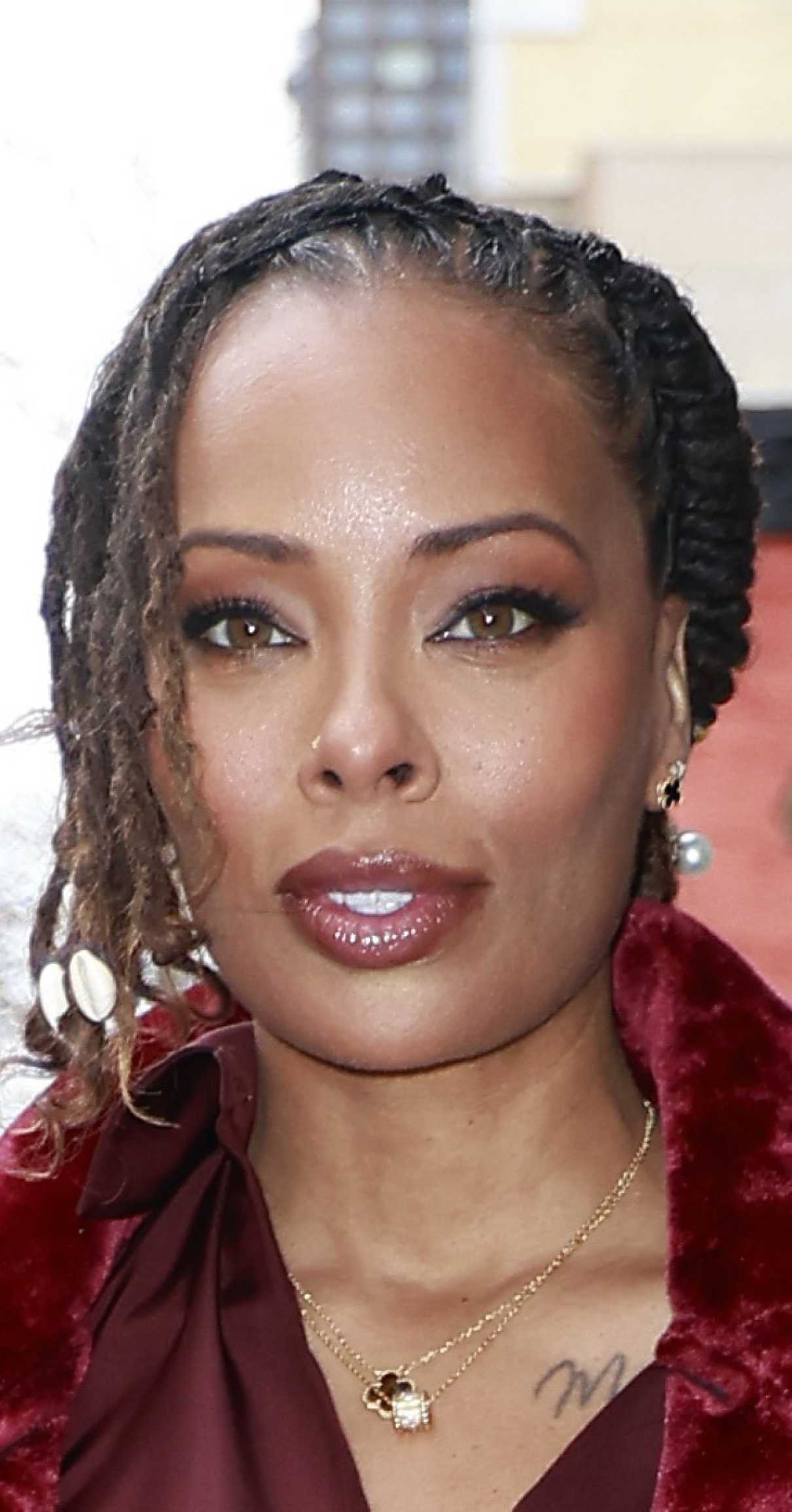 The 41-year-old model Eva Marcille, who played the role of Tyra Hamilton on the longstanding soap opera “The Young and the Restless”, in a burgundy ensemble arrives at the CBS Mornings Show in New York City.