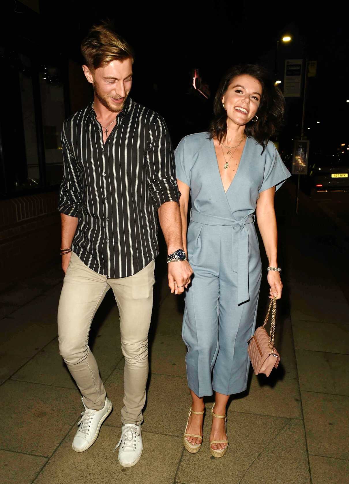 Faye Brookes in a Light Blue Pantsuit Out with Joe Davies Arrives at Spanish Bar in Manchester 08/01/2020-4 Previous image Next image