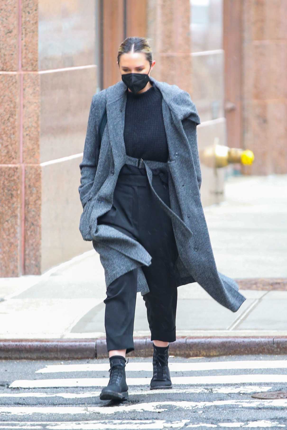 Georgina Burke in a Grey Coat Was Seen Out in New York 02/23/2021