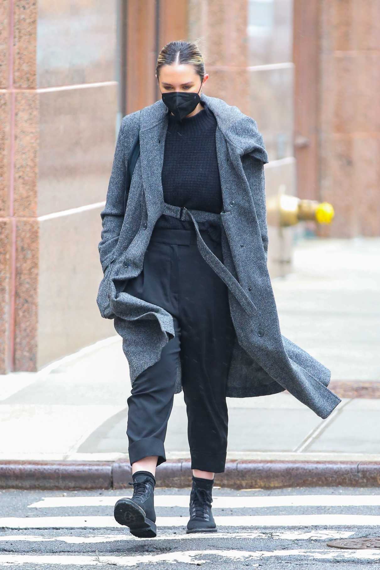 Georgina Burke in a Grey Coat Was Seen Out in New York 02/23/2021