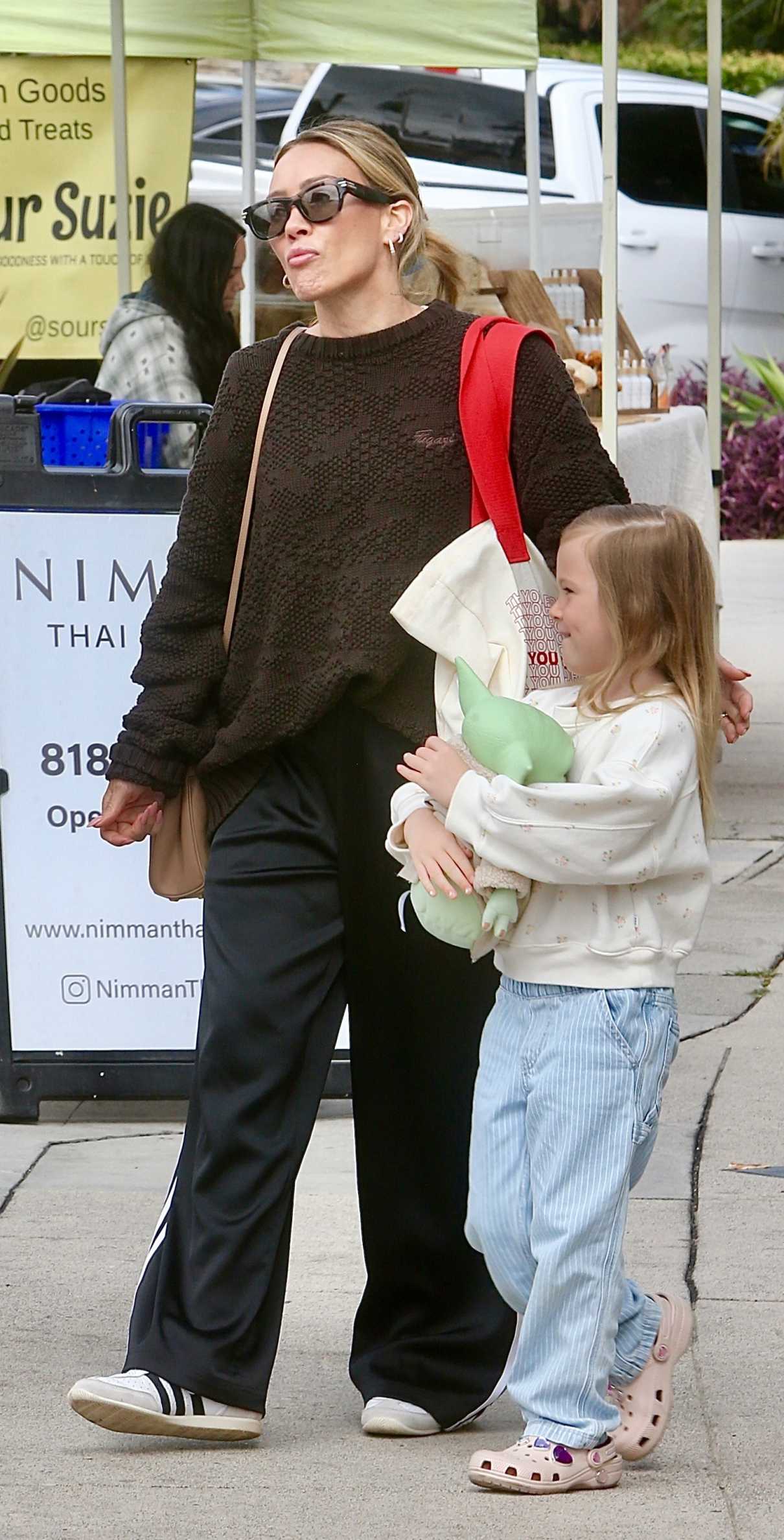 Hilary Duff in a Black Adidas Track Pants Enjoys a Family Trip to the Farmers Market in Studio City 04/12/2026-3 Previous image Next image