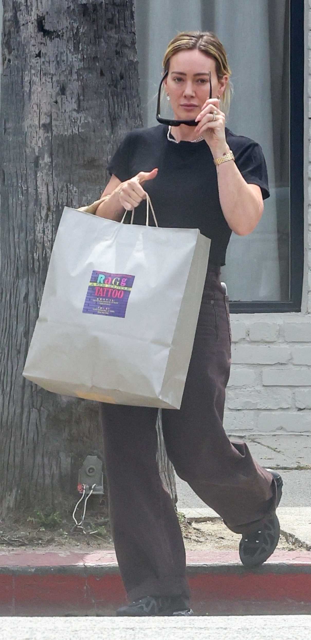 Hilary Duff in a Black Tee Was Seen Shopping at Ragg Tattoo Children’s Boutique in Studio City 04/09/2026-4 Previous image Next image