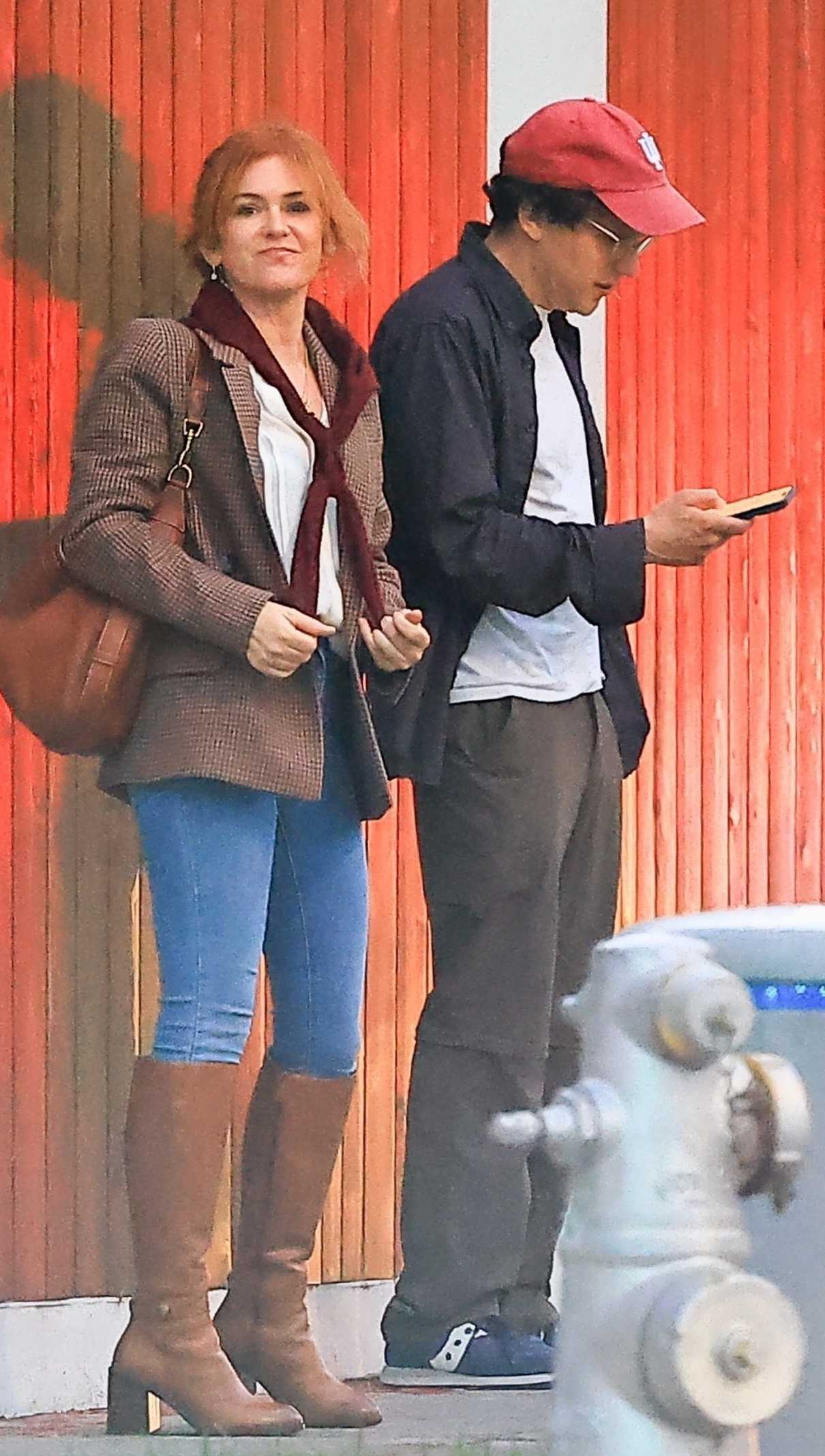 The 49-year-old actress Isla Fisher, who married Sacha Baron Cohen from March 2010 to April 2024, a tan blazer leaves dinner with Jesse Eisenberg at Matsuhisa in Los Angeles.