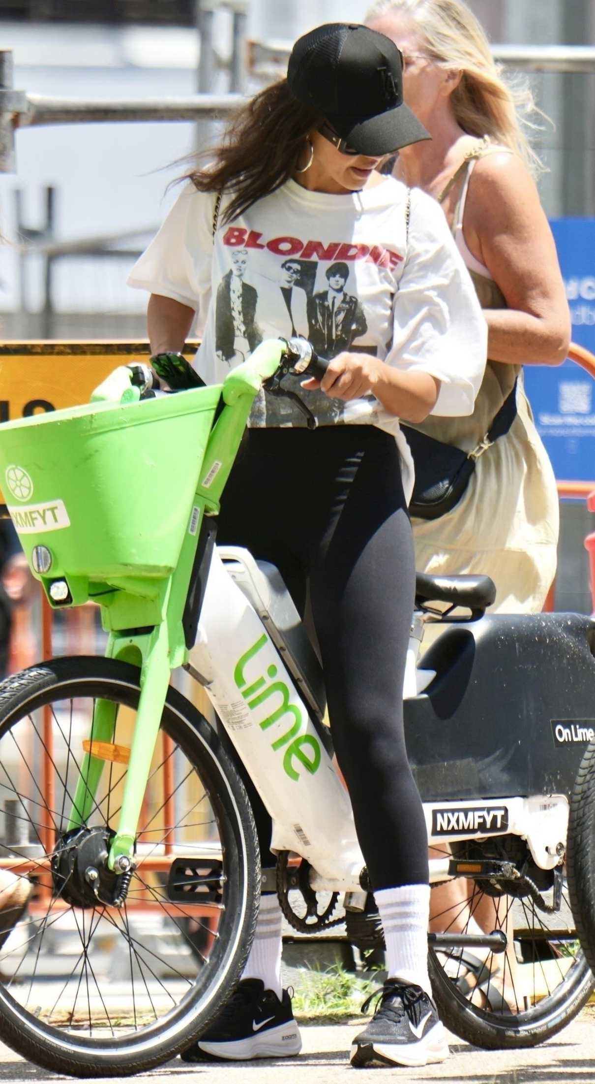 Jessica Alba in a White Tee Rides on E-Bike Out in Gold Coast 11/01/2025