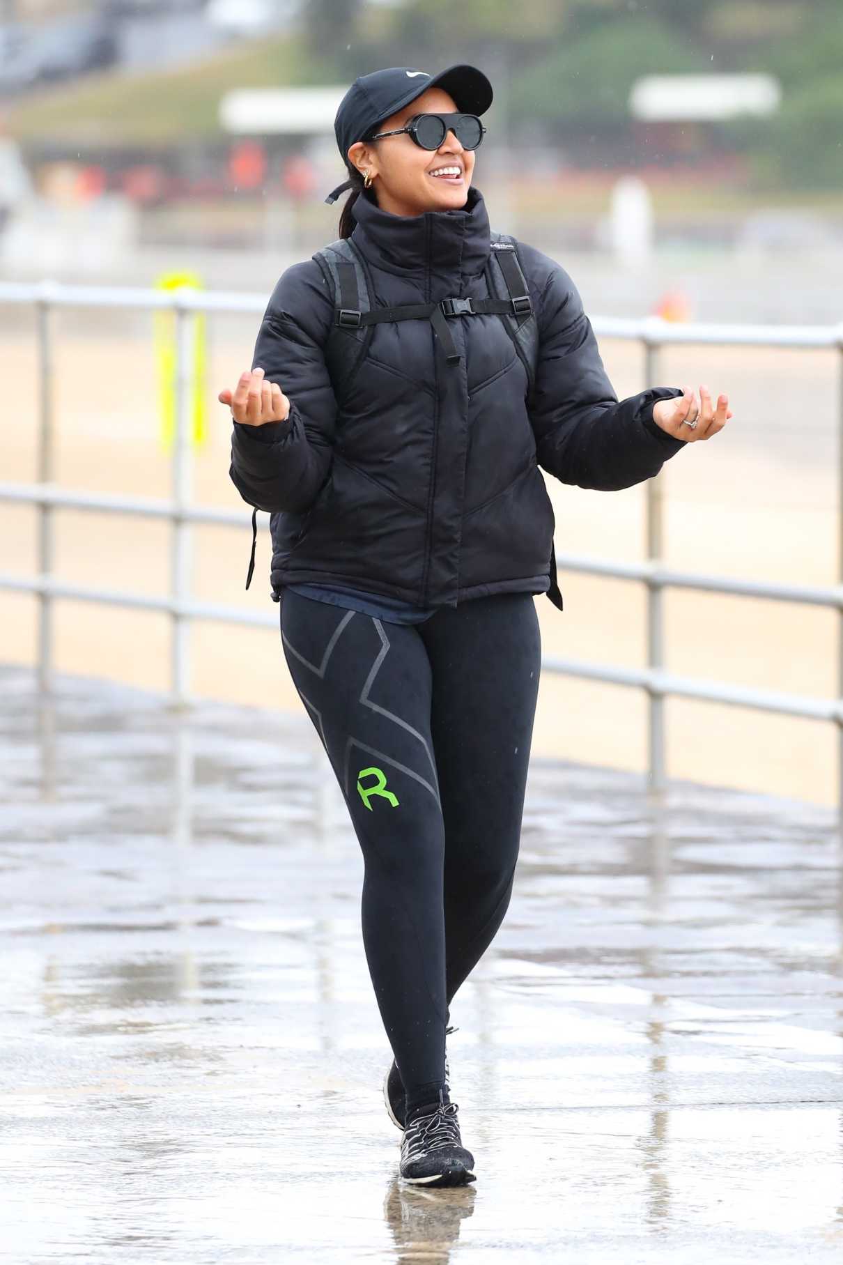 Jessica Mauboy in a Black Cap Walks in the Rain in Sydney 05/29/2020