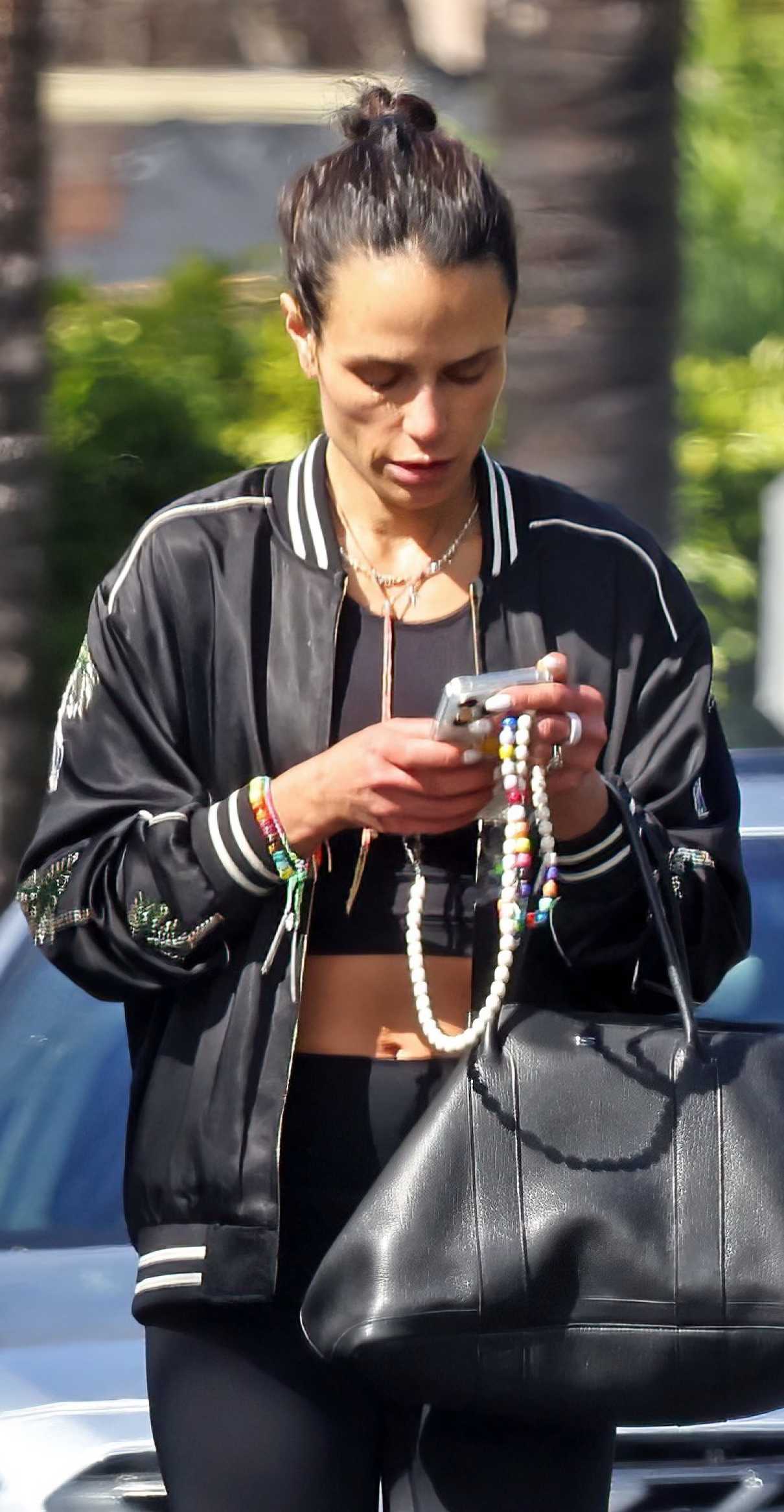 Jordana Brewster in a Black Jacket Leaves the Gym in Santa Barbara 02/19/2026