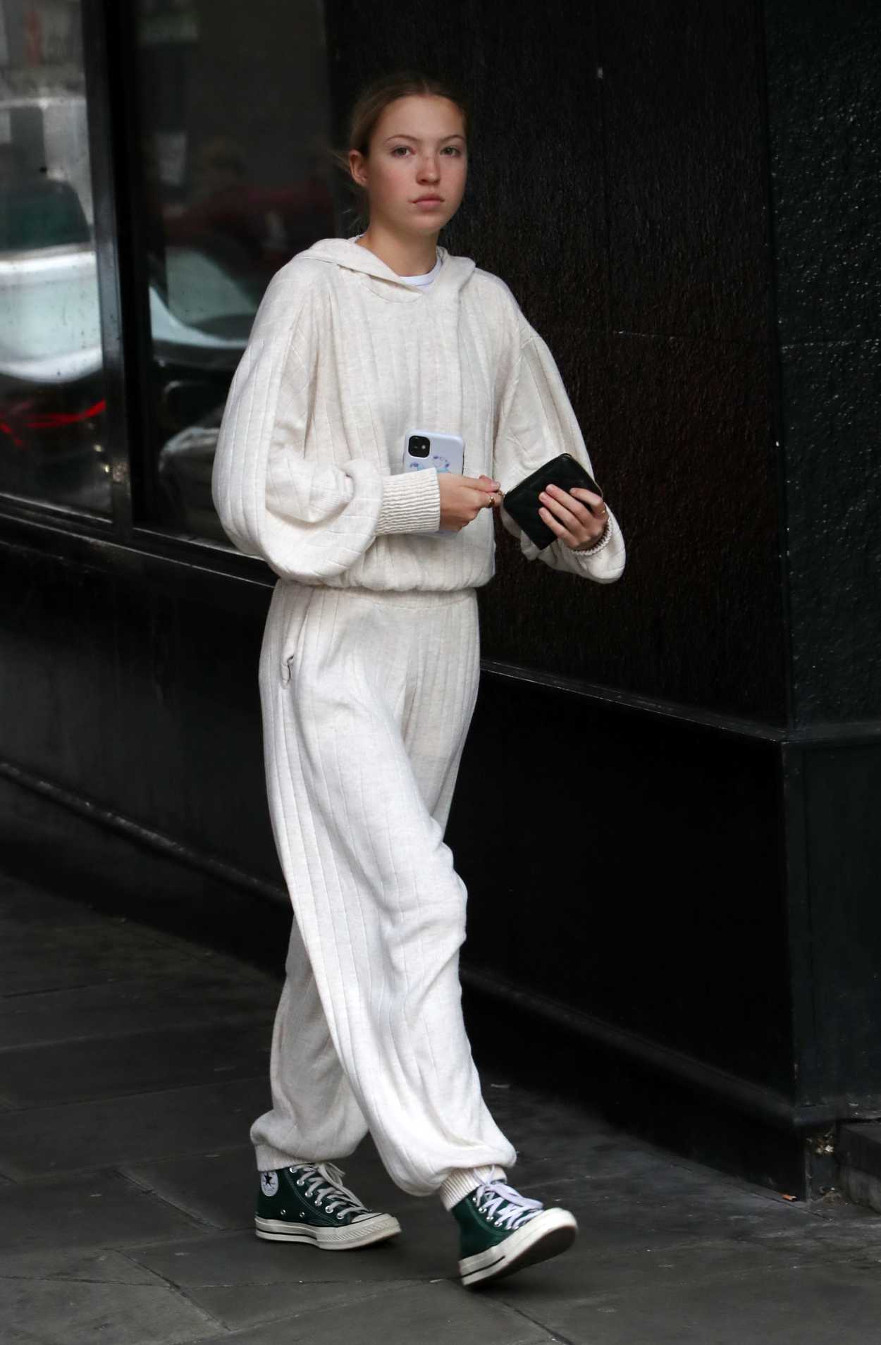Lila Moss in a Beige Sweatsuit Grabs a Bite to Eat at Pret in London 02/21/2022