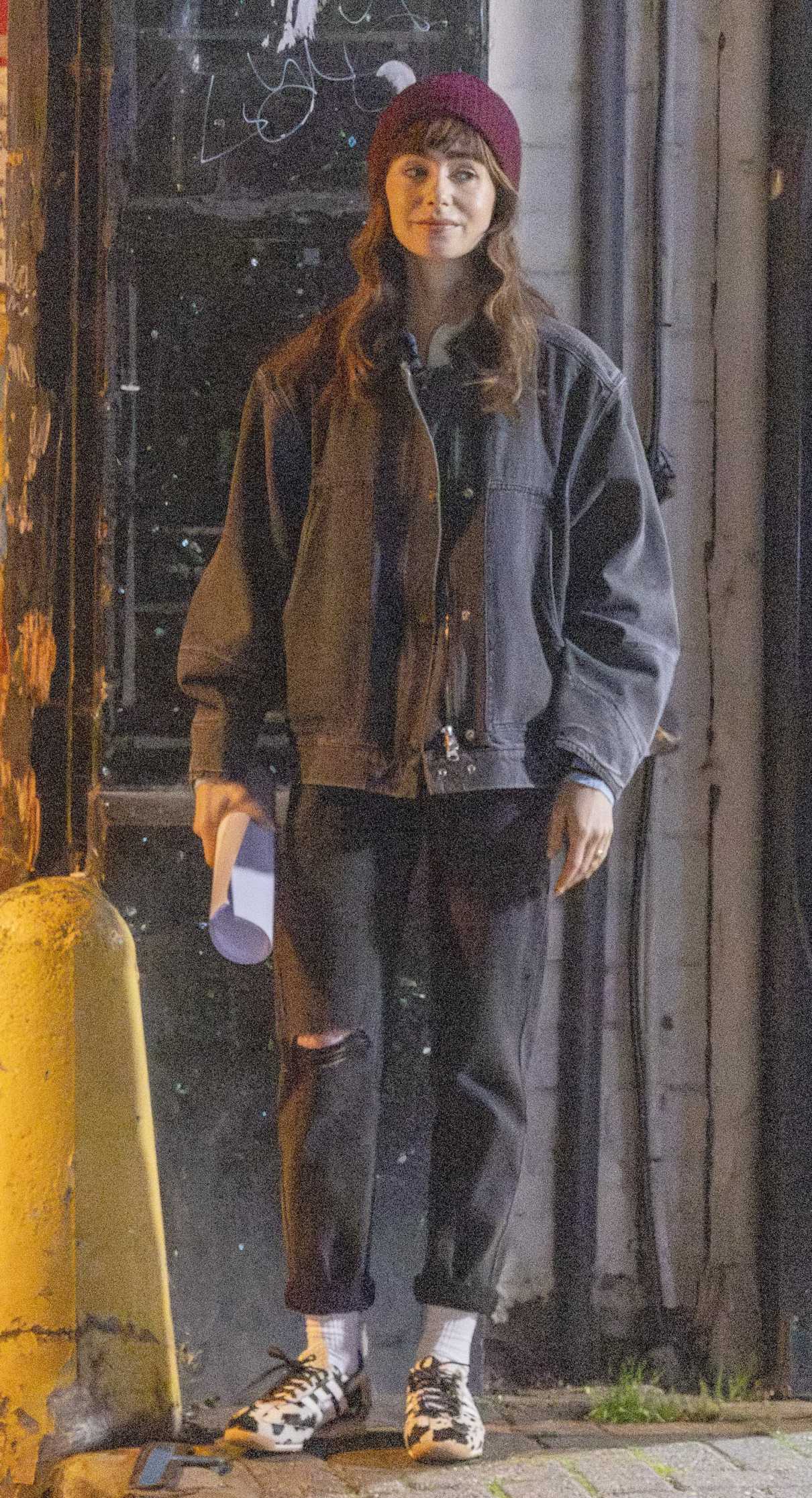 Lily Collins in a Black Denim Jacket Films a Scene for Close Personal Friends in London 09/26/2025-2 Previous image Next image