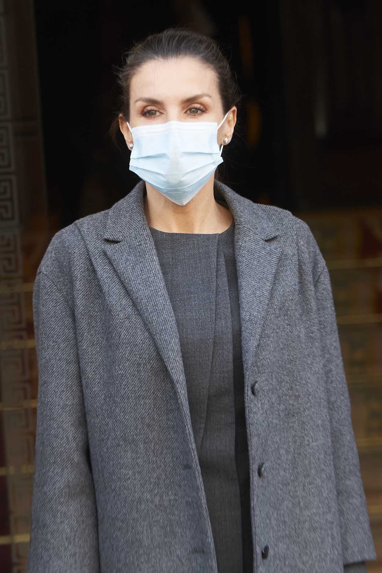Queen Letizia of Spain in a Grey Coat Attends Meeting of the Urgent Spanish Foundation FundeuRAE at Royal Academy of Language in Madrid 12/04/2020-5 Previous image Next image