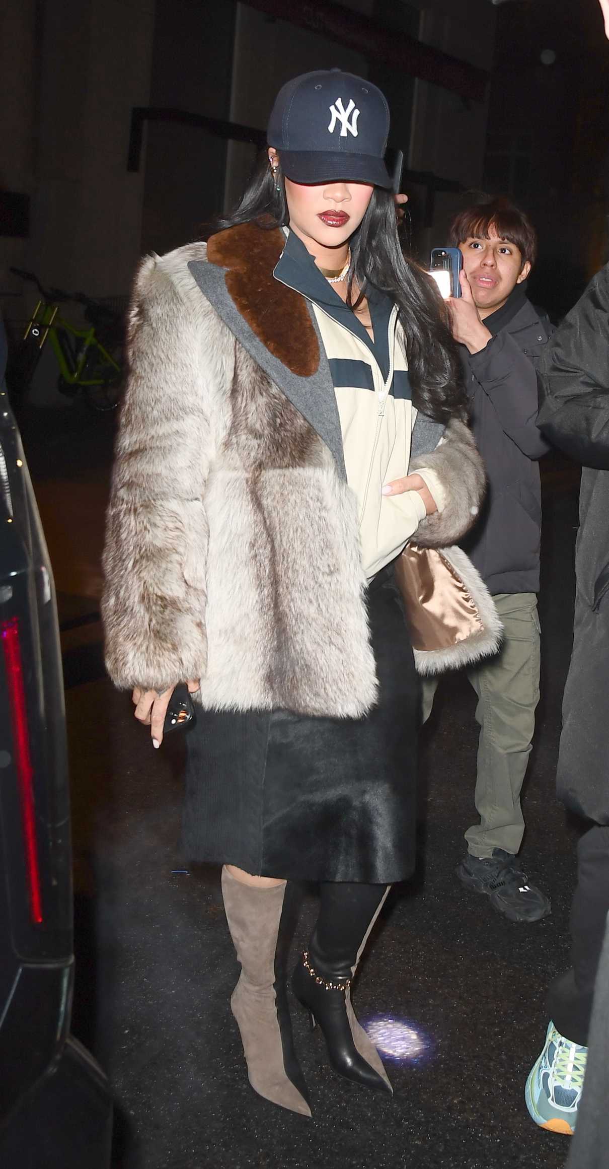 Rihanna in a Black Cap Leaves Her Hotel in New York City 01/17/2026