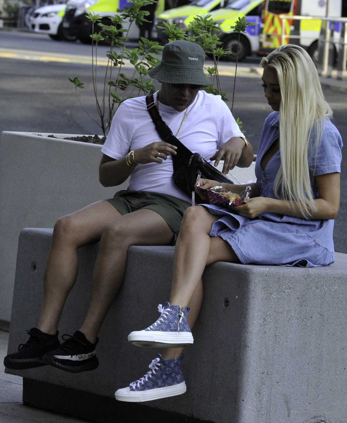 Shannen Reilly McGrath in a Blue Dress Leaves Archies Burger and Milkshake Bar in Manchester 06/26/2020-5 Previous image