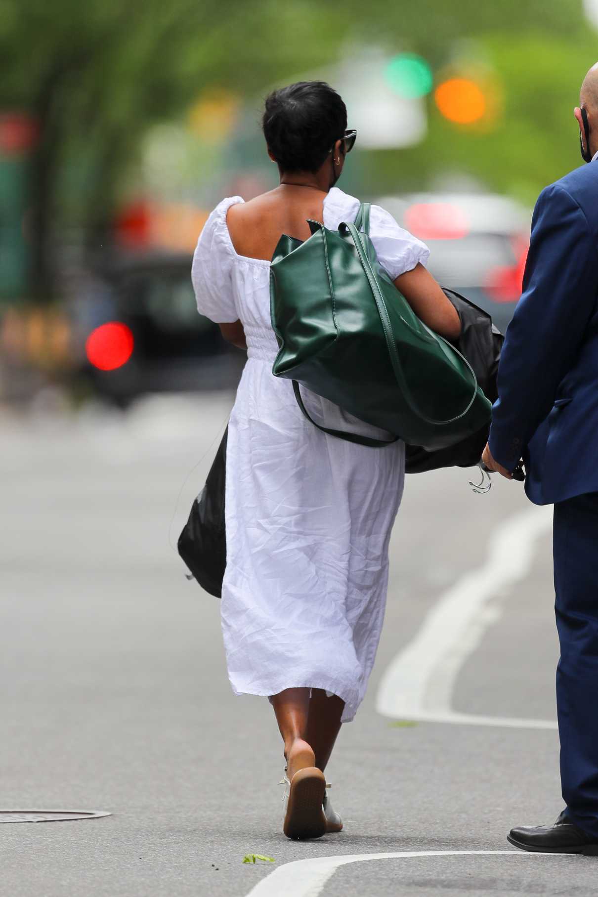 Tamron Hall in a White Dress and with Her Hands Full Leaves Work in New York 05/11/2021-4 Previous image Next image