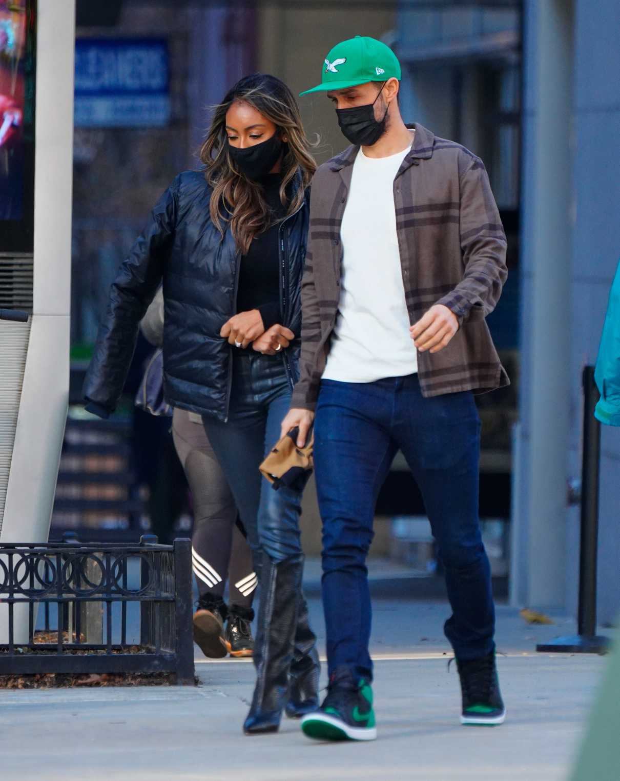 Tayshia Adams in a Black Jacket Goes Shopping in New York 12/27/2020